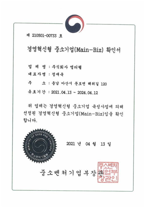 경영혁신형 중소기업 확인서